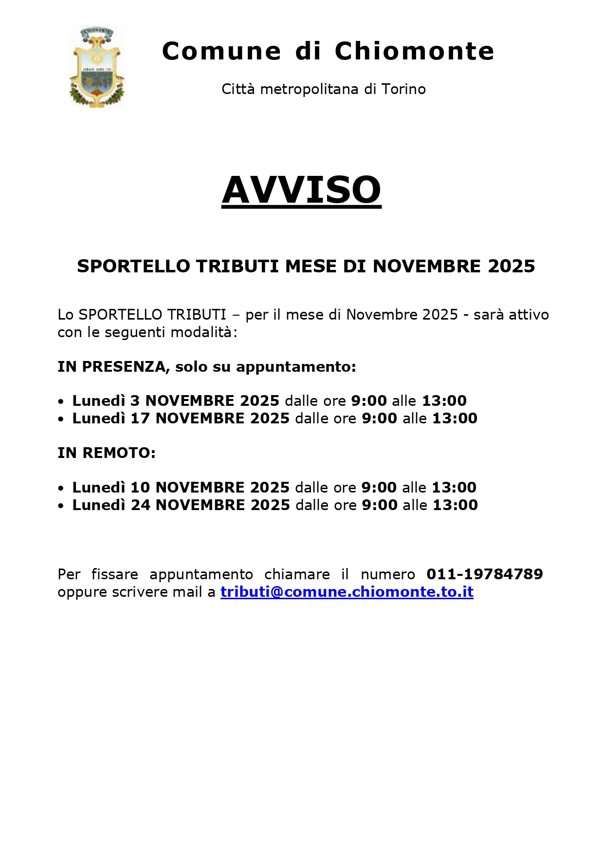 Via Vescovado n. 1 - 10050 Chiomonte (TO)