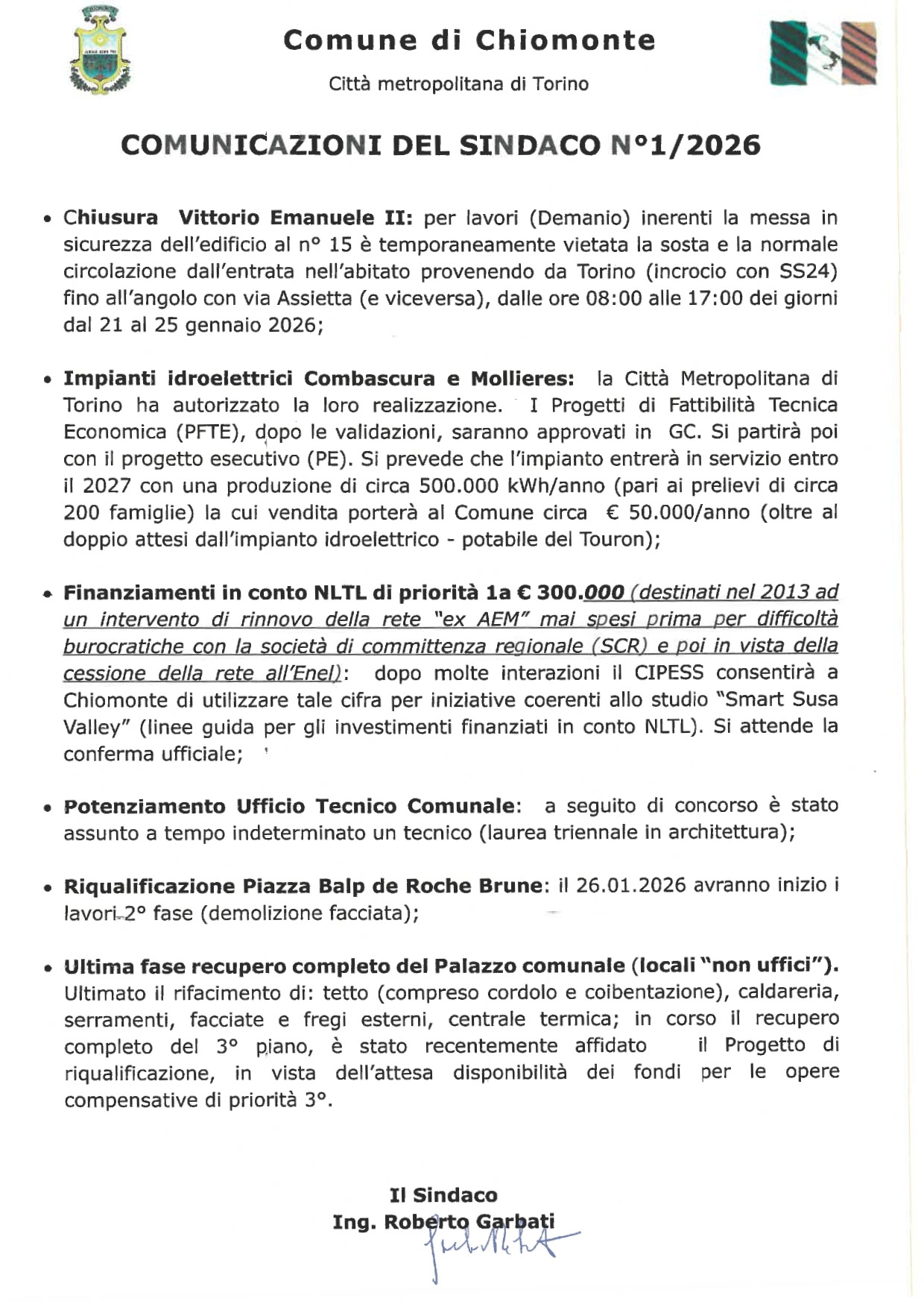 Via Vescovado n. 1 - 10050 Chiomonte (TO)