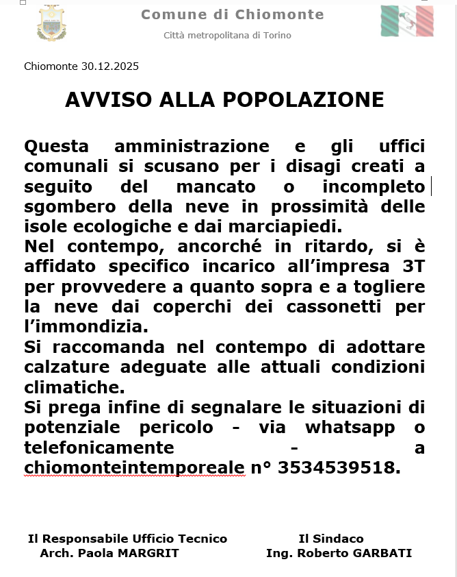 Avviso alla popolazione