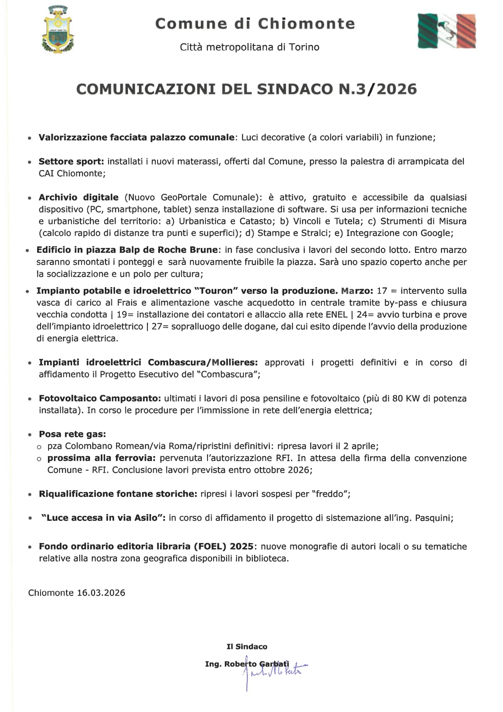 Comunicazioni del Sindaco n.3/2026
